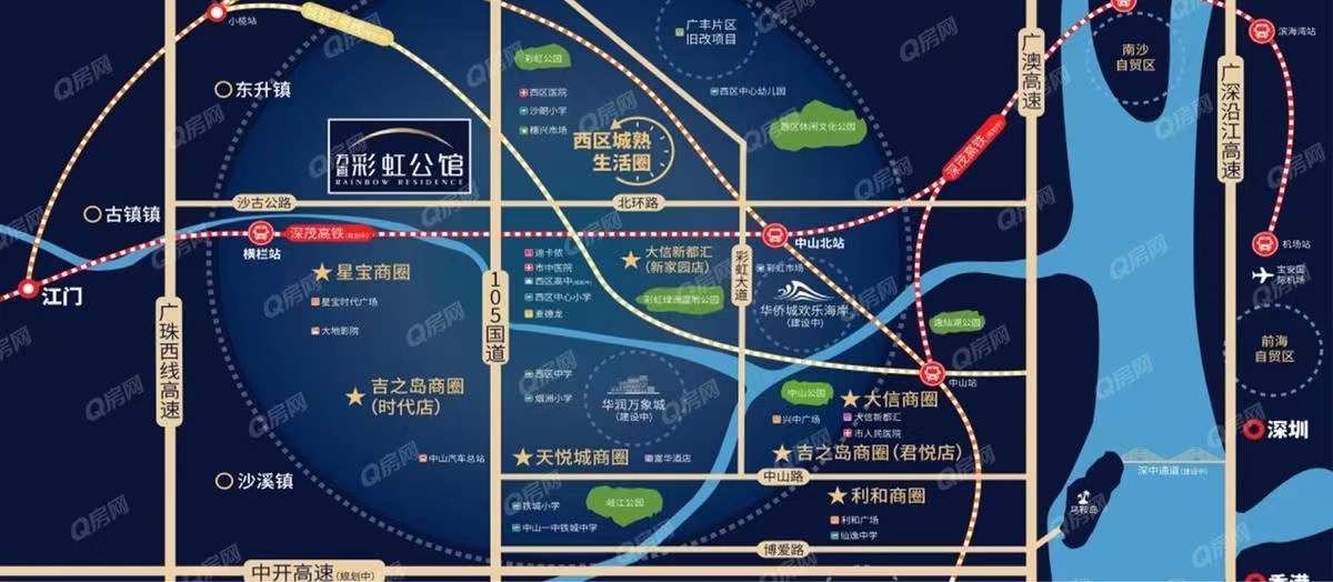 項目靠近105國道和廣珠西線高速,緊鄰廣珠輕軌中山北站之間,15分鐘可到達中山各大城鎮(zhèn)區(qū),30分鐘可到達廣州,江門,珠海等地