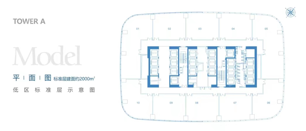 交付標準:網格地板,空調風口入戶,公共區域精裝修,每層四角預留上下水接口。