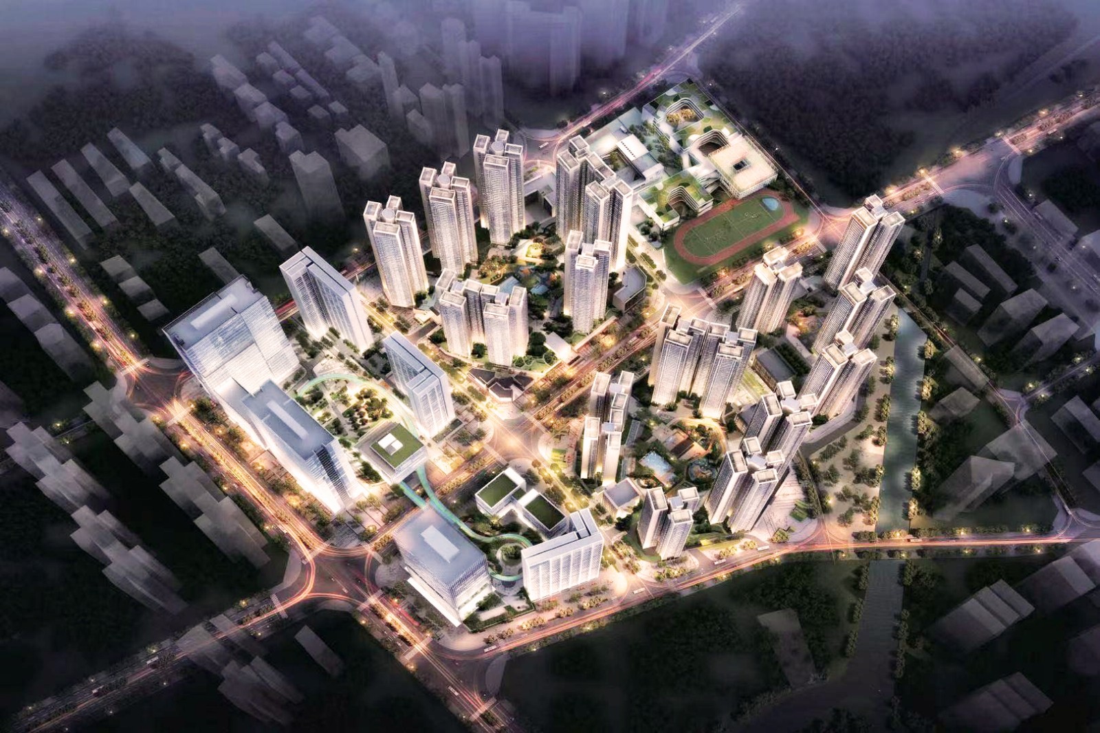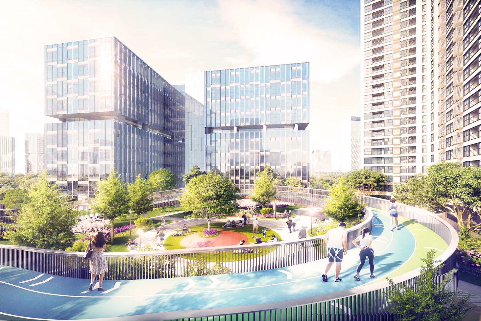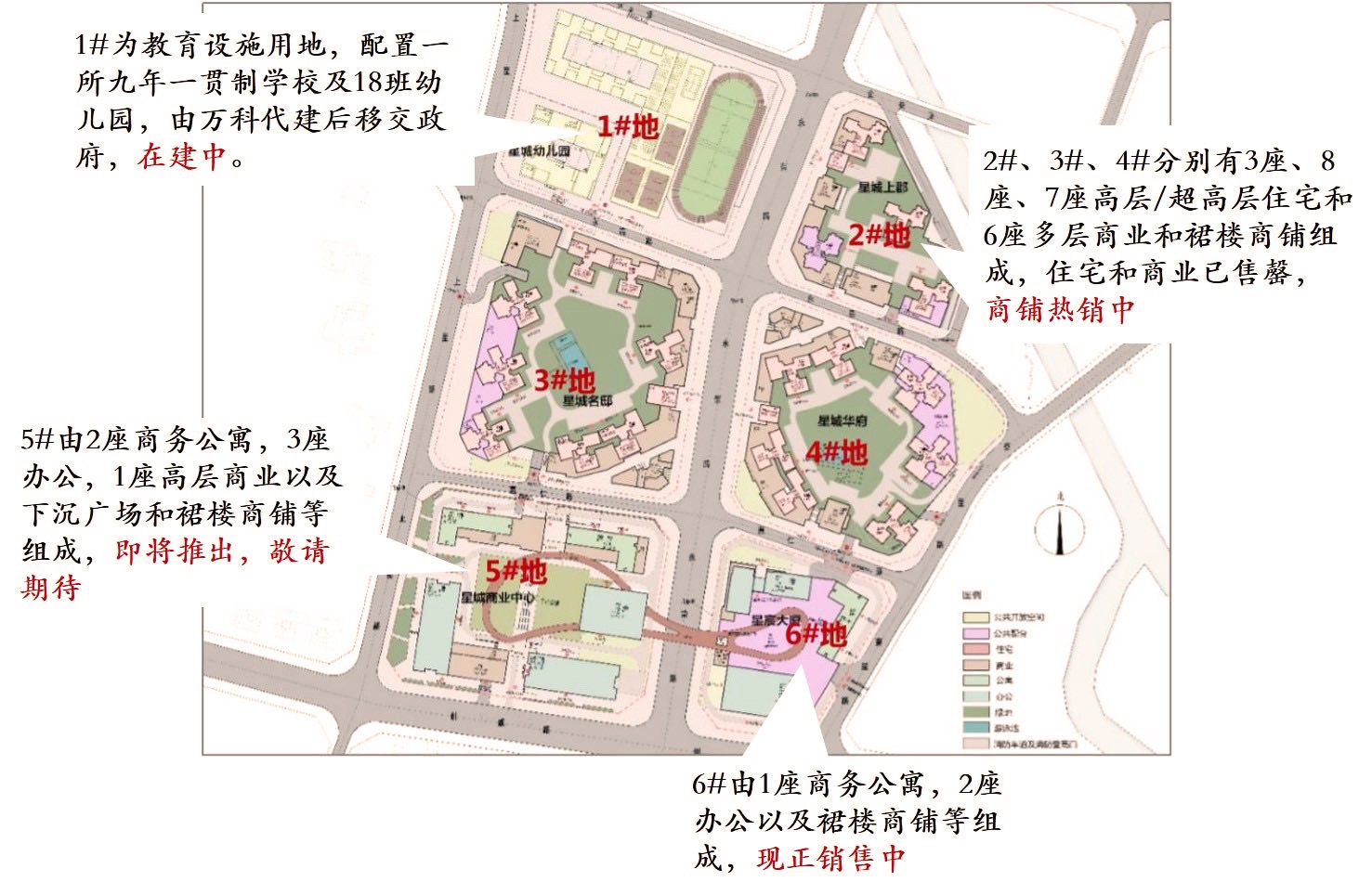 全項目分為6個地塊開發,由九年一貫制學校和幼兒園、涵蓋住宅、辦公、公寓、商業、保障房、學校、車站、以及公建配套等多重業態。