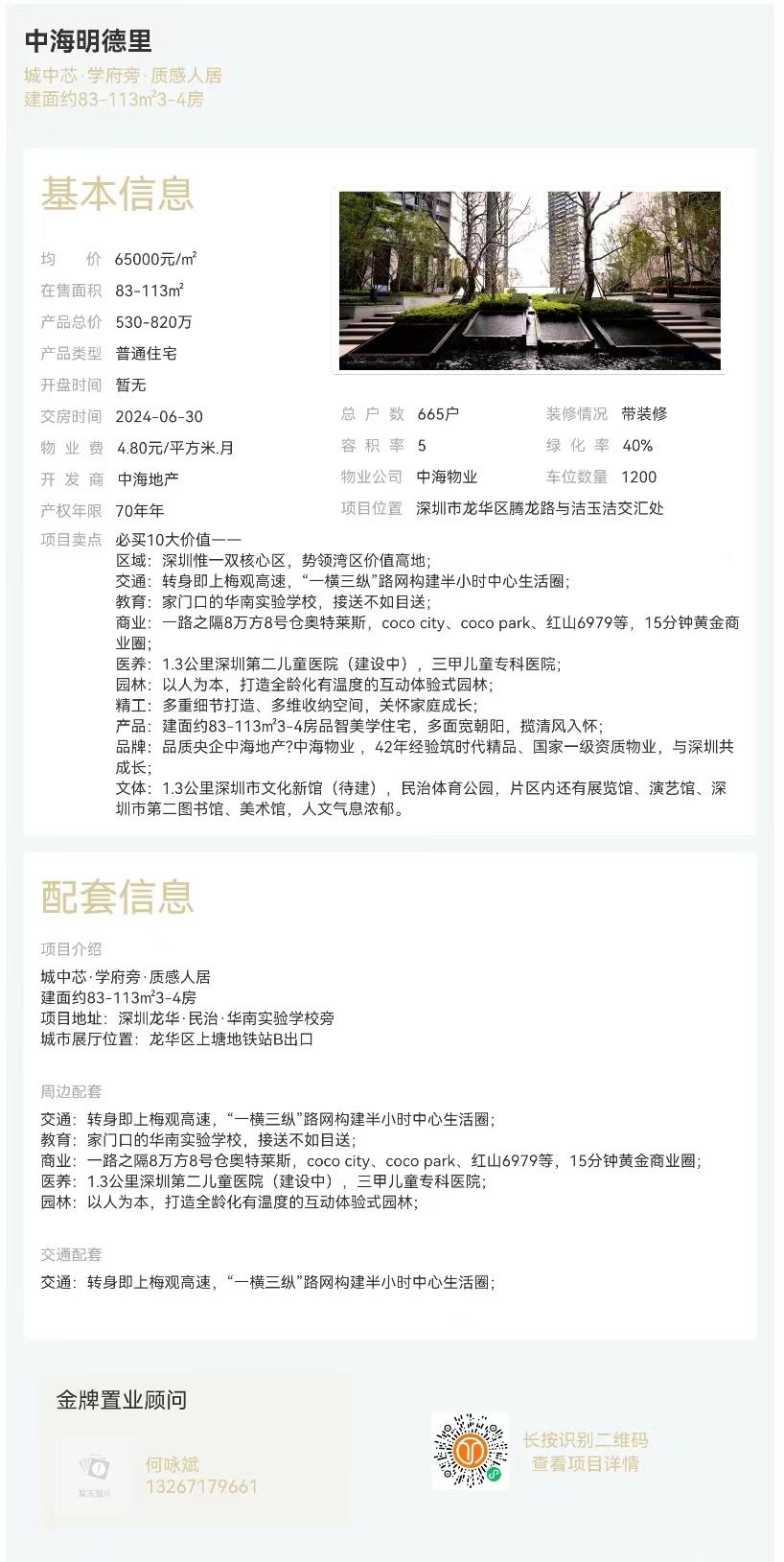 樓盤:中海時(shí)光境物業(yè)類型:普通住宅戶型:3室、4室面積:約82-108平米總價(jià):約335-520萬(wàn)聯(lián)系人:何詠斌聯(lián)系電話:13267179661
