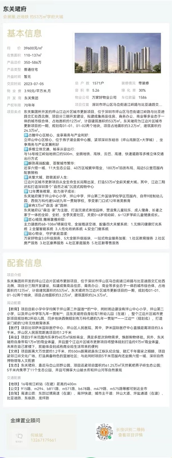 東關集團所開發的坪山江邊片區城市更新項目,位于深圳市坪山區馬巒街道江嶺路與比亞迪路交匯處西北側,項目分三期開發建設,擬建成集商品住房、商務辦公、商業等多業態于一體的城市綜合體,占地面積約12萬㎡,計容建筑面積約53萬㎡。東關珺府為江邊片區城市更新項目的一期,規劃有01-01、01-02兩個地塊,項目占地面積約3.2萬㎡,建筑面積約24.3萬㎡。