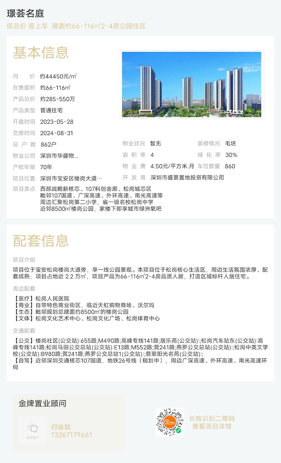 樓盤:璟薈名庭物業(yè)類型:普通住宅戶型:2室、3室、4室面積:約66-116平米總價(jià):約285-550萬聯(lián)系人:何詠斌聯(lián)系電話:13267179661